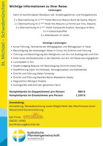 Euro 880,-- im Doppelzimmer, Euro 1100,-- im Einzelzimmer, Anmeldung über Stuhler Reisen Schwabmünchen!
